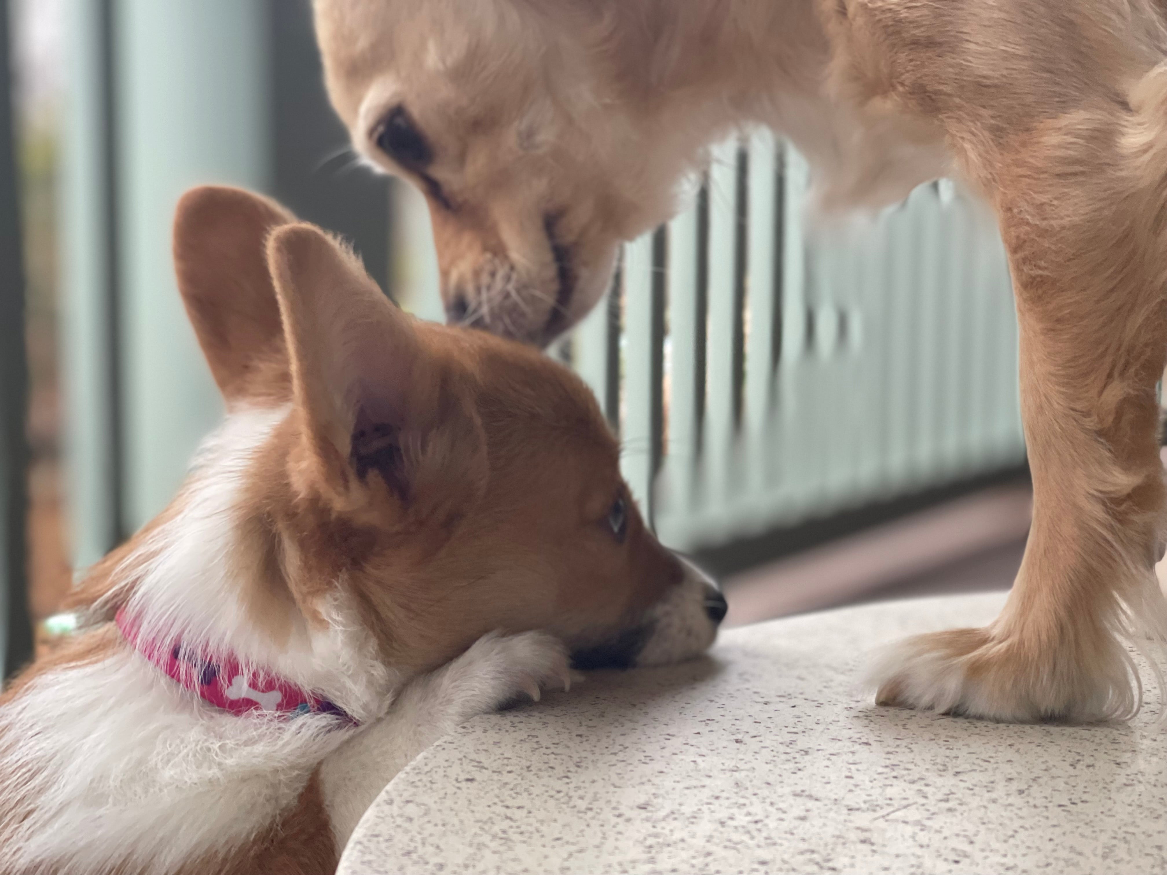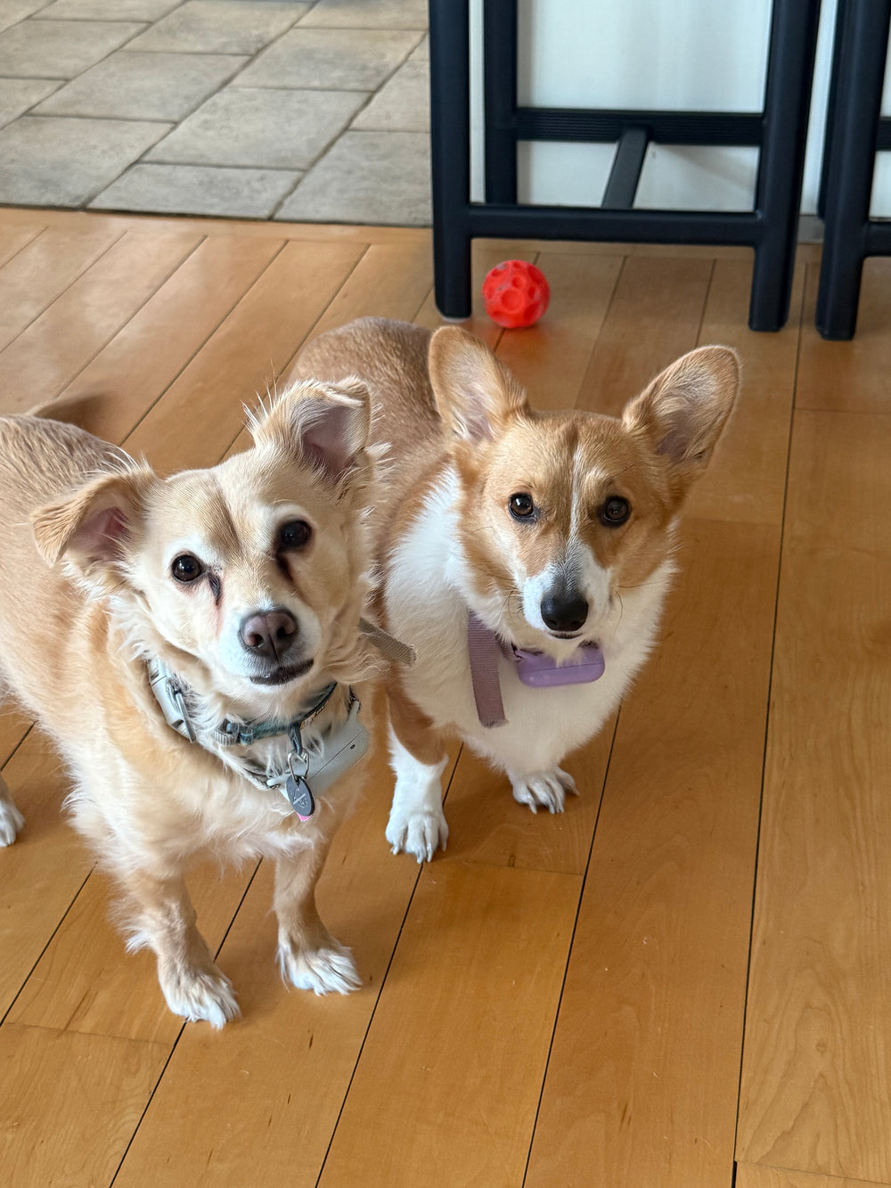 We are blessed with two wonderful dogs: Rosie Boom Booms the corgi, and Della, the rescue mix. Spicy and sweet!
